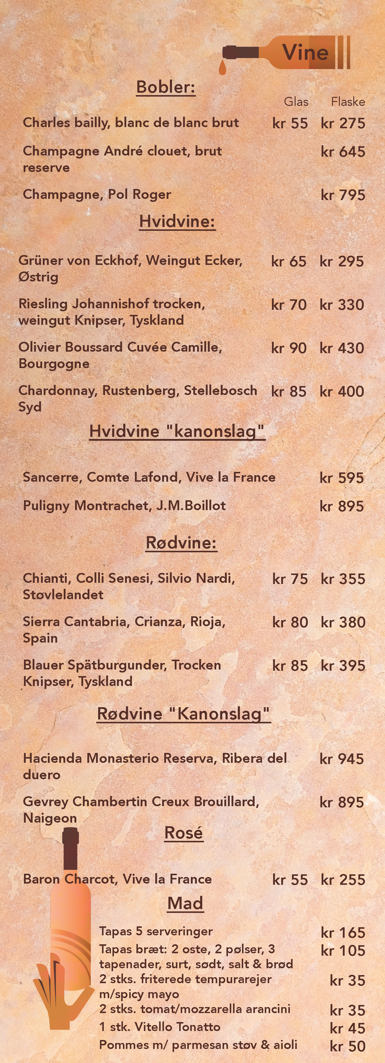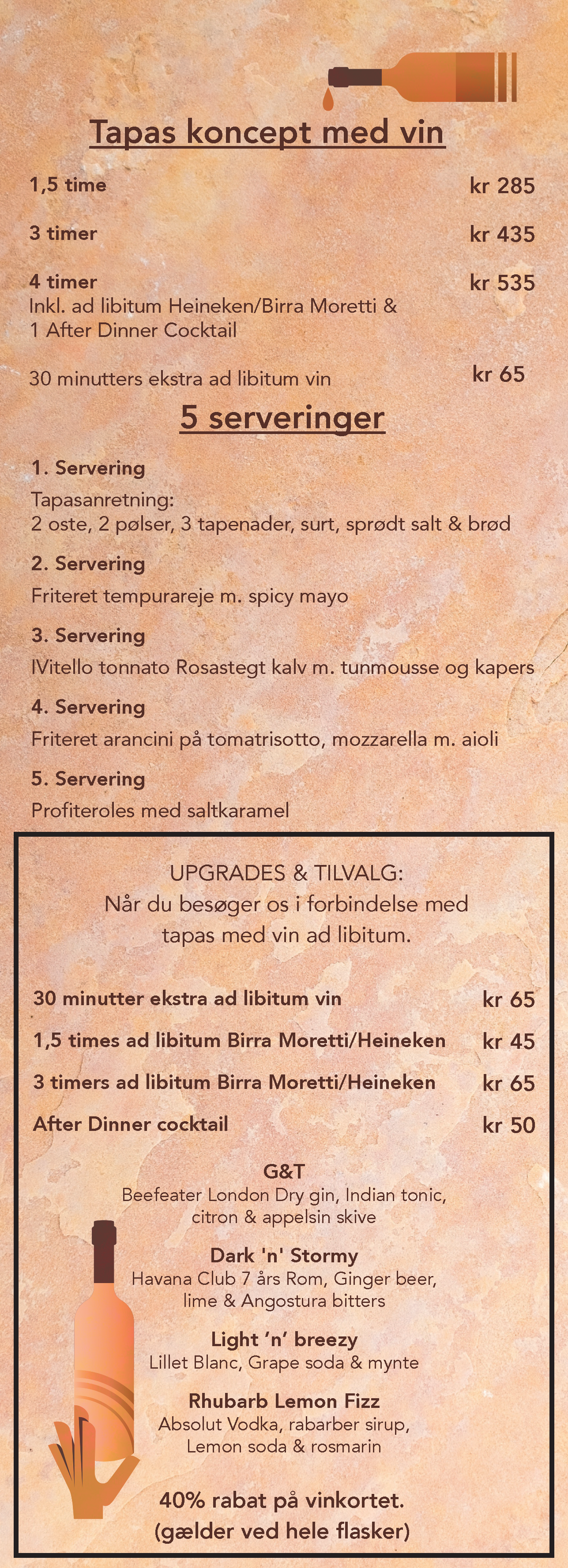 Book bord fredag og lørdag kl. 15.30 til tapas med ad libitum vin.